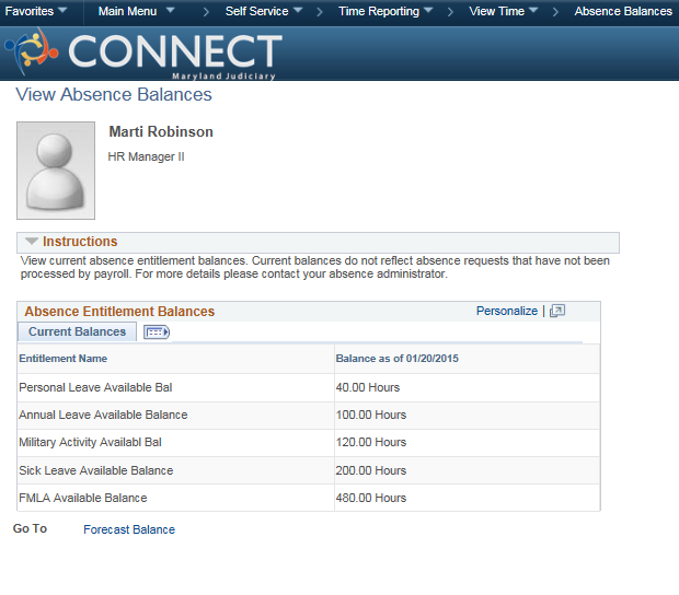 Through Employee Self Service you will have access to view your absence balance.