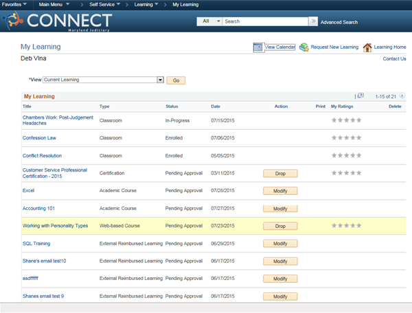 An employee who has enrolled into a class is able to drop the class. If the employee was enrolled by the manager, only the manager can drop them from the class.