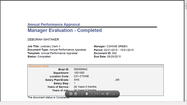 Employees will have access to their historical performance documents and have the ability to save or print as PDF.