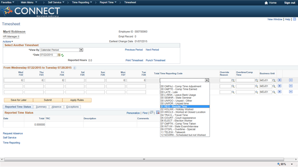 Use the Timesheet page to report time and task details for a day, week, or time period for either punch or elapsed time reporters.