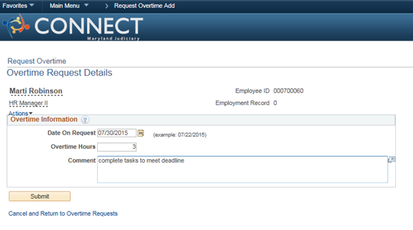 Employees will be able to submit a request for overtime through self service and the request will route to their manager for review and approval.