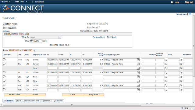 In this example, Friday's out time is 4:30:00 and the comp time earned starts at 4:30:01.